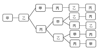 【答案】C【解析】根據(jù)題意需要安排甲乙丙三人在10月1號(hào)到6號(hào)值班,6天中每天安排1人,每人值班2天且不連續(xù)。那么第一步可以先安排1號(hào),甲、乙、丙三人選一人值班,有3種選擇。第二步安排2號(hào),由于每人值班不連續(xù),所以從剩下兩人中選一人,有2種選擇。第三步安排3-6號(hào),安排3號(hào)值班的人可以和1號(hào)值班的人相同,也可以和1號(hào)、2號(hào)值班人員均不同,而3號(hào)值班的人是否和1號(hào)值班人員相同,會(huì)影響后面日期的安排,所以需分類討論。假設(shè)1號(hào)安排甲,2號(hào)安排乙(如下圖所示),則3號(hào)安排分兩類:①安排甲;②安排丙。計(jì)算每一類方法數(shù):①安排甲:根據(jù)題干條件,4號(hào)只能安排丙,5號(hào)安排乙,6號(hào)安排丙,有1種情況。②安排丙:4號(hào)可以安排甲或者乙,若4號(hào)安排甲,5號(hào)可以安排乙或者丙,6號(hào)即為剩下一人值班,有2種;同理,若4號(hào)安排乙,5號(hào)可以安排甲或者丙,6號(hào)也是剩下一人值班,有2種,則共有2+2=4種,則第三步共有1+4=5種。最終分步相乘3×2×5=30種,正確答案為C。