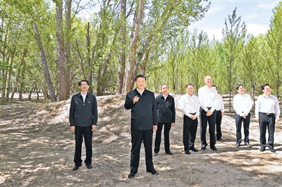 5日至6日,習(xí)近平在內(nèi)蒙古自治區(qū)黨委書(shū)記孫紹騁、自治區(qū)人民政府主席王莉霞陪同下,深入巴彥淖爾市的自然保護(hù)區(qū)、現(xiàn)代農(nóng)業(yè)示范園區(qū)、林場(chǎng)、水利部門(mén)等調(diào)研。