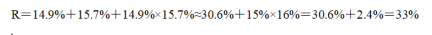 1+14.9%+15.7%+14.9%×15.7%≈1.33倍。因此,選擇最接近的C選項(xiàng)。