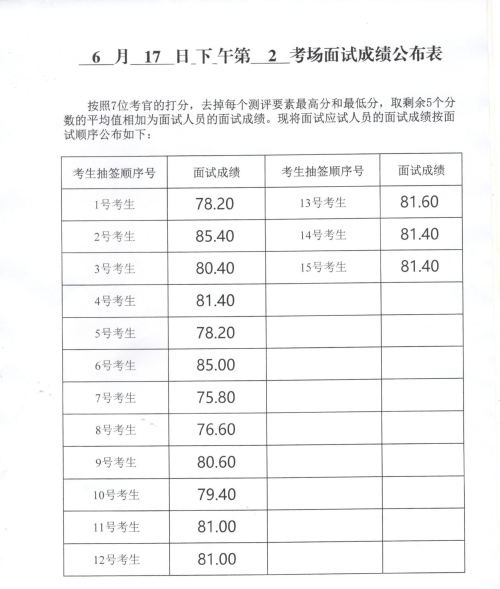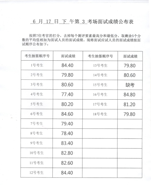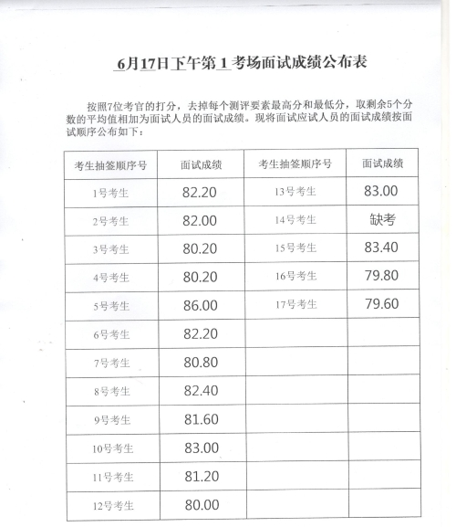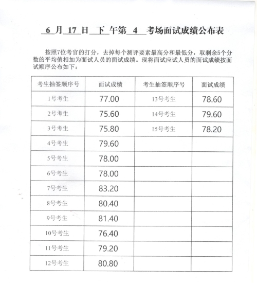 2023年度威海市各級機關補充錄用公務員及面向本土優(yōu)秀人才招錄基層公務員面試成績(6月17日下午)