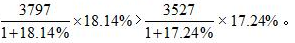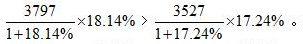 由于3797>3527,18.14%>17.24%,同大則大,因此