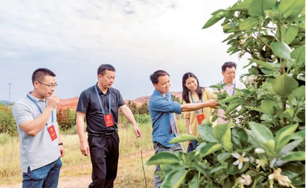 江西省吉安市吉水縣白水鎮(zhèn)人大充分發(fā)揮代表作用,組織各級(jí)人大代表實(shí)地調(diào)研井岡蜜柚產(chǎn)業(yè)發(fā)展情況,為壯大特色產(chǎn)業(yè)積極建言獻(xiàn)策,助力鄉(xiāng)村振興。圖為2023年4月20日,吉水縣白水鎮(zhèn)白水墾殖場(chǎng)二分場(chǎng)井岡蜜柚基地,人大代表在柚園實(shí)地調(diào)研井岡蜜柚產(chǎn)業(yè)發(fā)展情況。求是圖片廖敏/攝