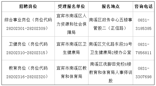 十三、本公告由宜賓市南溪區(qū)人力資源和社會(huì)保障局負(fù)責(zé)解釋。各招聘崗位的具體條件,由招聘單位負(fù)責(zé)解釋。
