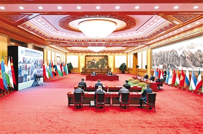 7月4日下午,國家主席習(xí)近平在北京以視頻方式出席上海合作組織成員國元首理事會第二十三次會議并發(fā)表題為《牢記初心使命堅持團(tuán)結(jié)協(xié)作實(shí)現(xiàn)更大發(fā)展》的重要講話。新華社記者李學(xué)仁攝