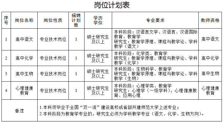 3.具有研究生以上學歷、碩士以上學位且本科畢業(yè)于全國“雙一流”建設高校或省部共建師范大學,符合招聘崗位專業(yè)要求;
