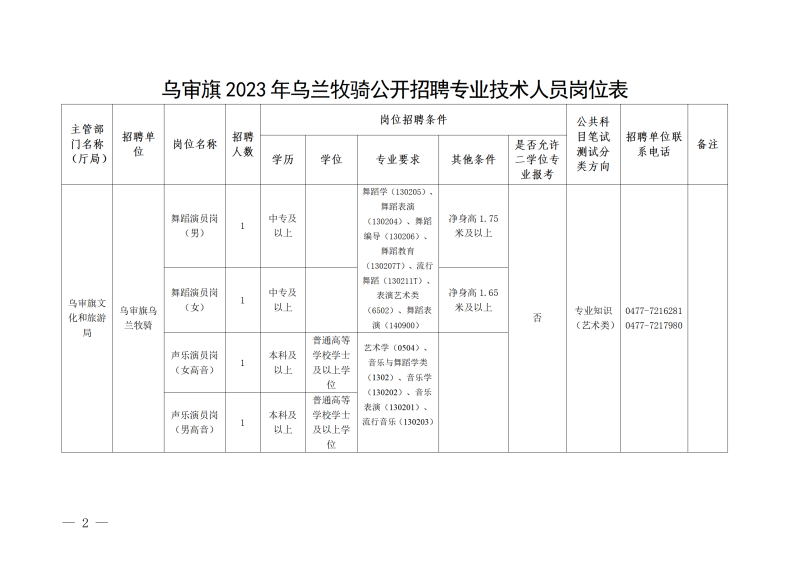 附件:烏審旗2023年烏蘭牧騎公開招聘專業(yè)技術(shù)人員崗位表