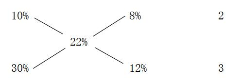 ,故符合分子分母具有可加性的比值混合規(guī)律,因此,我們可以采用十字交叉來解決溶液混合問題。例題如下: