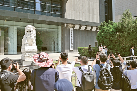 2023年5月18日,國(guó)家金融監(jiān)督管理總局正式掛牌,我國(guó)金融監(jiān)管機(jī)構(gòu)改革邁出重要一步。圖為當(dāng)日媒體記者在國(guó)家金融監(jiān)督管理總局門前拍攝。新華社記者 李鑫/攝