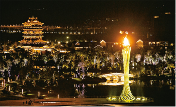 2023年7月28日晚,第31屆世界大學(xué)生夏季運(yùn)動(dòng)會(huì)開(kāi)幕式在成都東安湖體育公園主體育場(chǎng)舉行。這是成都大運(yùn)會(huì)主火炬。新華社記者 曹祎銘/攝