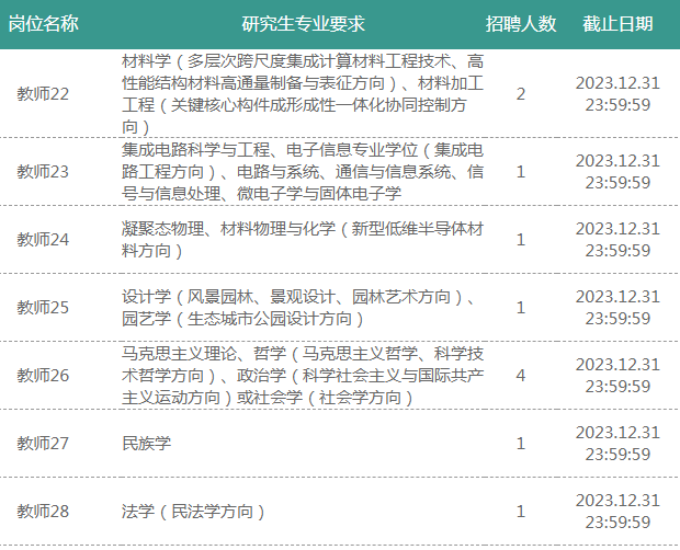 報(bào)名時(shí)間:面向博士招聘的崗位為長期招聘崗位,自簡章發(fā)布之日起7個(gè)工作日后,學(xué)校根據(jù)崗位報(bào)名情況,適時(shí)啟動(dòng)面試、考察、體檢程序,崗位招滿即止,未招滿的崗位報(bào)名有效期至2023年12月31日。