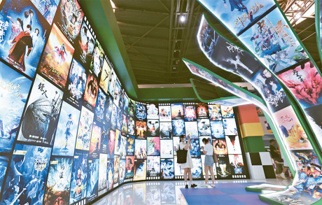 2023年7月13日,為期4天的第十八屆中國國際動漫游戲博覽會在上海世博展覽館拉開帷幕。動漫游戲產(chǎn)業(yè)鏈上下游200多家中外企業(yè)參展。圖為參觀者在騰訊視頻展位拍攝。新華社記者 王翔/攝
