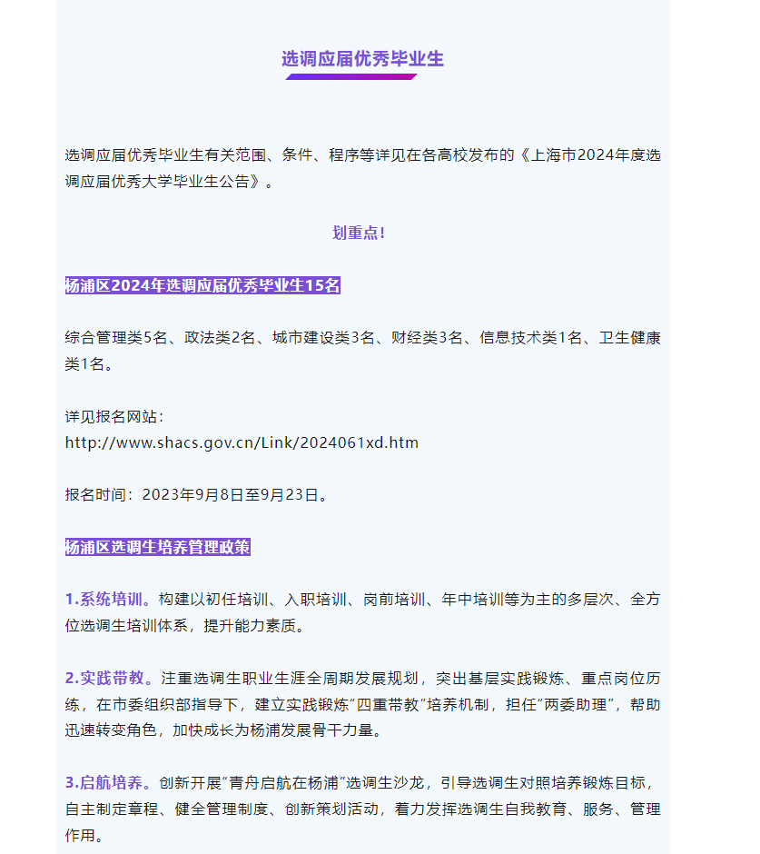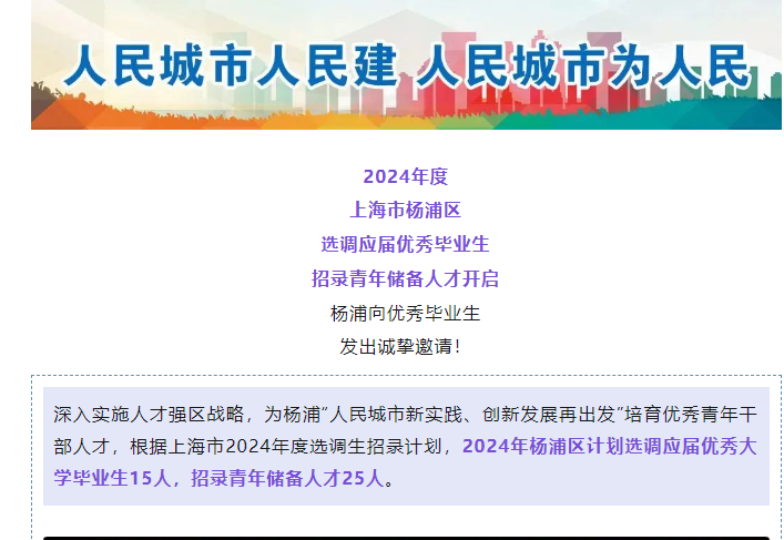 2024年上海市楊浦區(qū)選調(diào)招錄40人公告