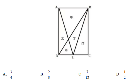 例2:一塊種植花卉的矩形土地如圖所示,AD邊長(zhǎng)是AB的2倍,E是CD的中點(diǎn),甲、乙、丙、丁、戊區(qū)域分別種植白花、紅花、黃花、紫花、白花。則種植白花的面積占矩形土地面積的:( )