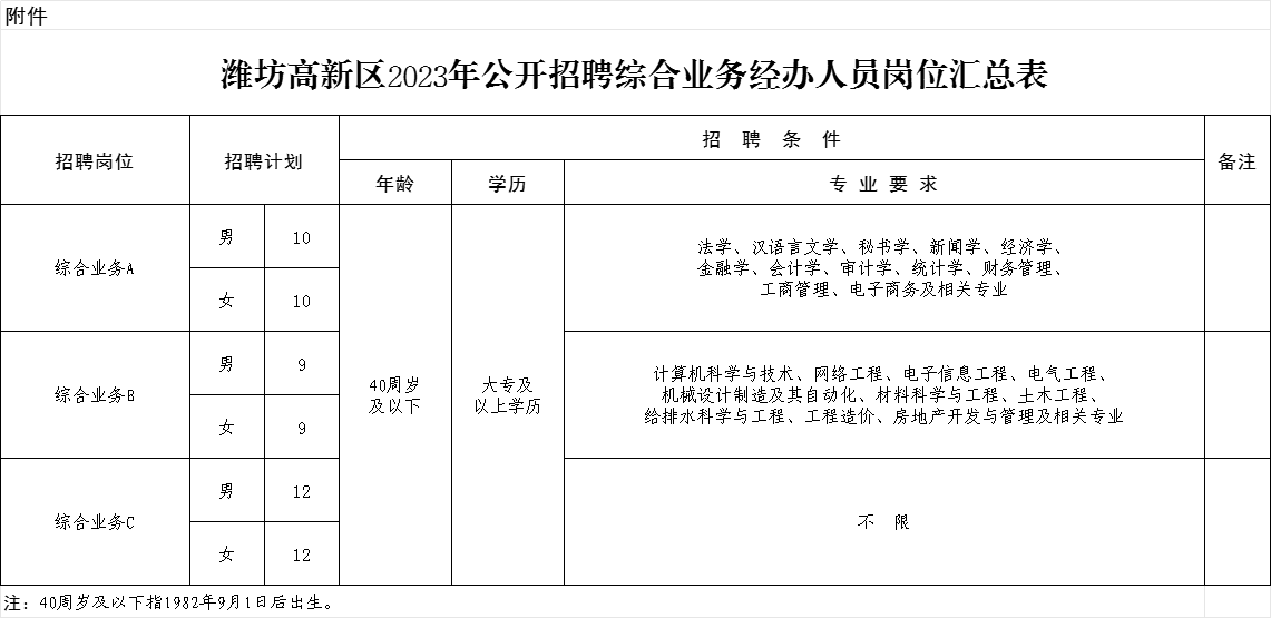 附件:濰坊高新區(qū)2023年公開招聘綜合業(yè)務(wù)經(jīng)辦人員崗位匯總表