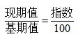 以基期值為100,按照現(xiàn)期值和基期值的比例關系進行計算,所得結果即為指數(shù)。