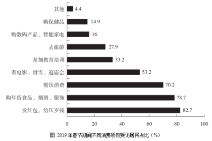 2019年春節(jié)期間有“餐飲消費”的受訪居民中,一定有人:( )