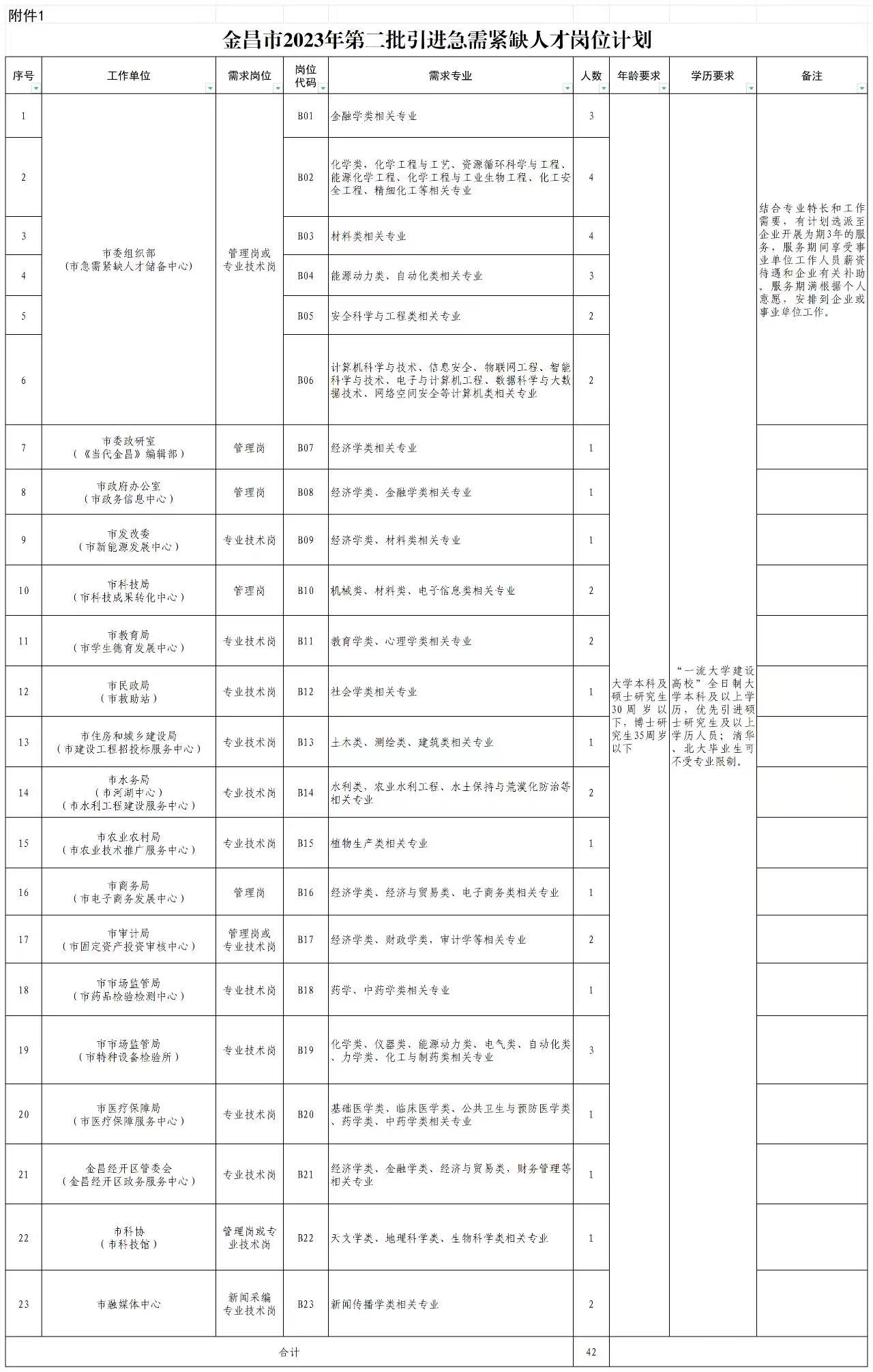 金昌市2023年第二批引進(jìn)急需緊缺人才公告