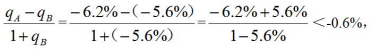 A.上升0.6% B.下降0.6% C.上升1.2% D.下降1.4%