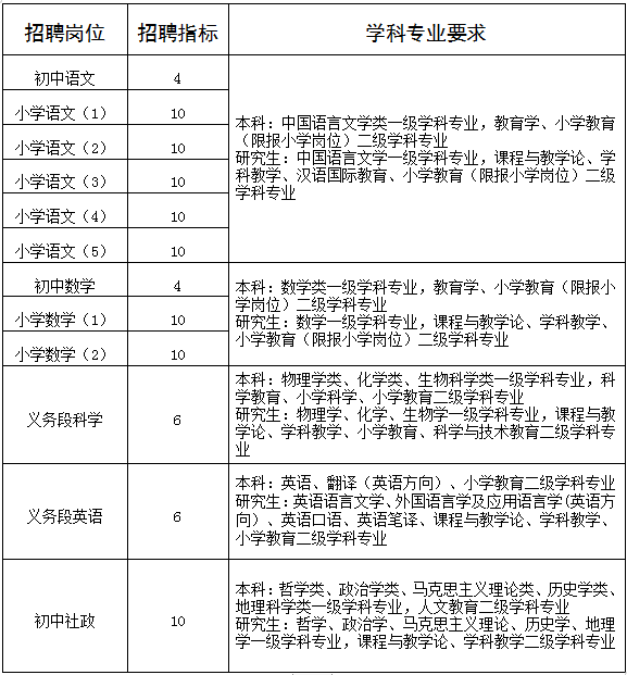 四、招聘崗位、指標和學科專業(yè)要求