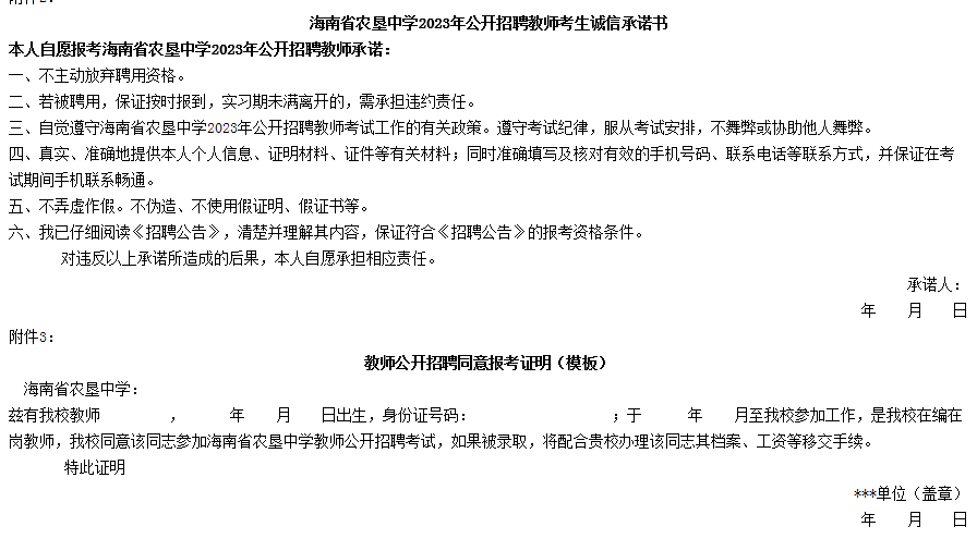 附件:1.《海南省農(nóng)墾中學(xué)2023年公開(kāi)招聘教師計(jì)劃表》