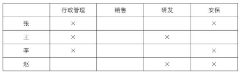 【例2】大學(xué)畢業(yè)的張、王、李、趙4人應(yīng)聘到了同一家大型公司,每人負(fù)責(zé)一項(xiàng)工作。其中一人做行政管理,一人做銷售,一人做研發(fā),另一人做安保。已知: