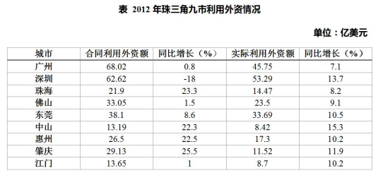 問題:2012年,珠三角九市中實際利用外資額占合同利用外資額比例最高的城市是:( )