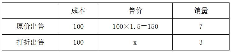 【例2】一批貨物,本來按獲得50%的利潤來定價(jià)。結(jié)果只賣出70%的貨物,為盡早賣出余下的貨物,商店決定按定價(jià)打折銷售,這樣所獲得的全部利潤,是原來的期望利潤的82%,問打了多少折?( )