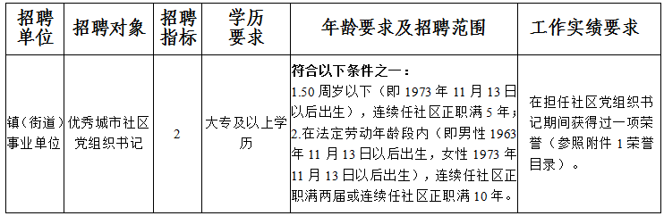 招聘對(duì)象為鄞州區(qū)管轄(不含梅墟街道、新明街道、聚賢街道)現(xiàn)任城市社區(qū)黨組織書(shū)記(含產(chǎn)業(yè)型社區(qū)黨組織專職副書(shū)記)。報(bào)考人員應(yīng)具備公告及崗位規(guī)定的基本條件和資格條件: