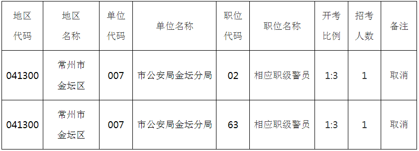 關(guān)于常州市2024年度考試錄用公務(wù)員取消職位的公告