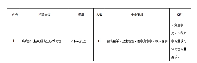 疾病預(yù)防控制所專業(yè)技術(shù)崗位,醫(yī)學(xué)影像、臨床醫(yī)療專業(yè)11人。