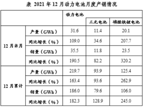 問題:2021年12月,磷酸鐵鋰電池當月產量占全年動力電池產量的比重約為:( )