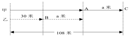 通過尋找行程圖上線段間的等量關(guān)系,可達(dá)到最終的解題目的。如上題,根據(jù)圖中線段間的關(guān)系可得30+a+a=108,解得a=39,故整個過程中乙走了30+39=69米。