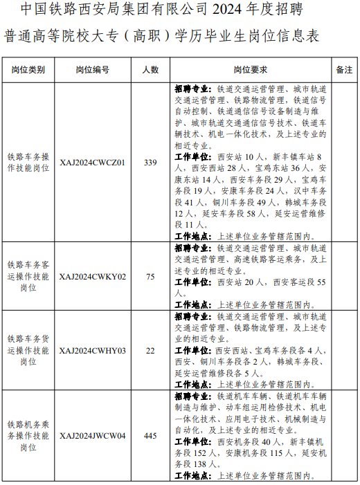 中國鐵路西安局集團有限公司2024年度招聘普通高等院校大專(高職)學(xué)歷畢業(yè)生公告