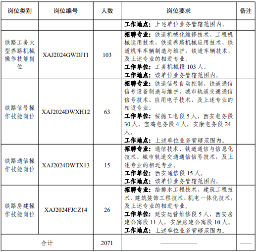 本次計劃招聘2071人,招聘崗位均為鐵路運輸生產(chǎn)一線操作技能崗位。招聘崗位、專業(yè)、工作地點及人數(shù)等內(nèi)容詳見附件。
