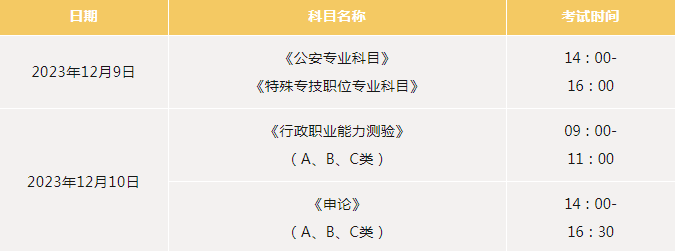 (二)考試科目及時間安排: