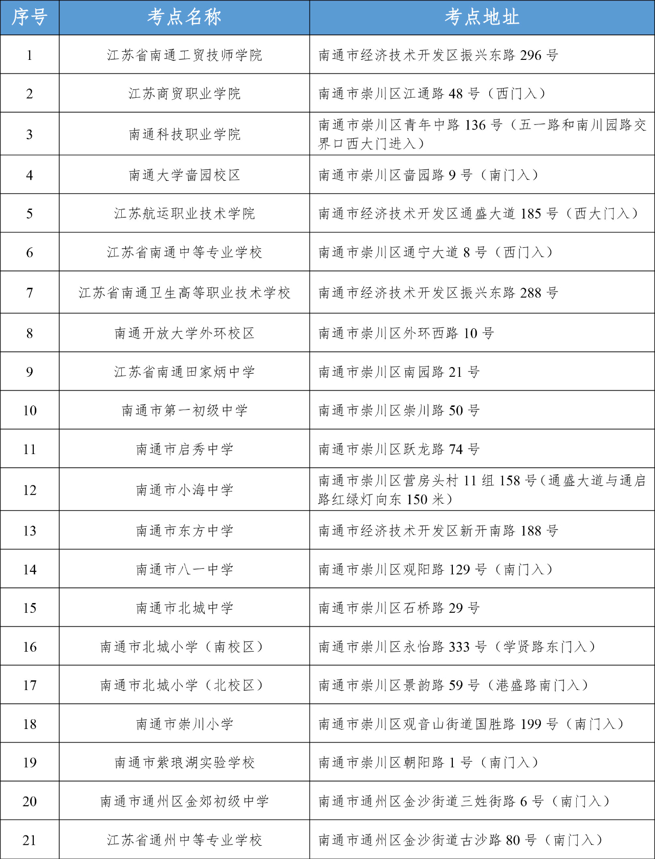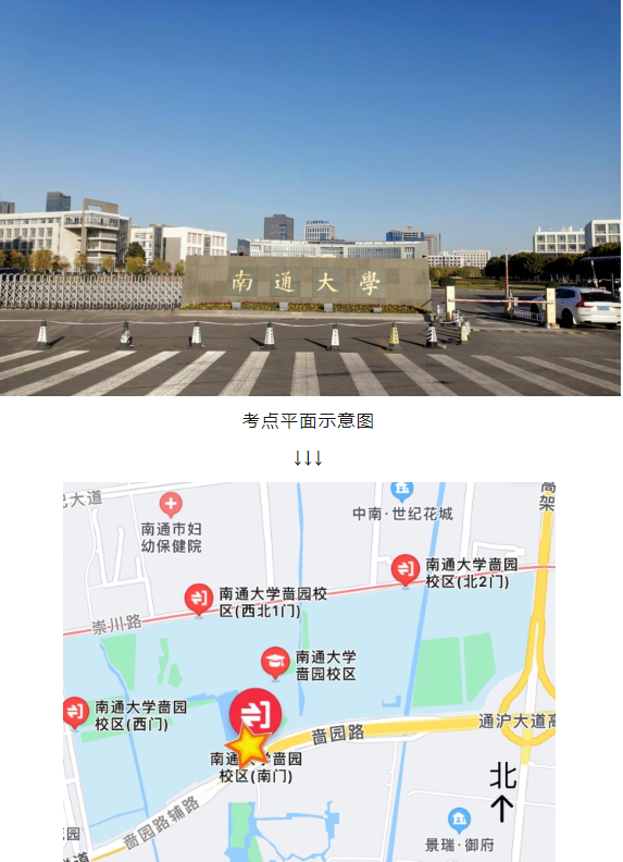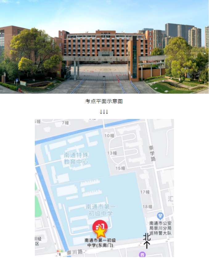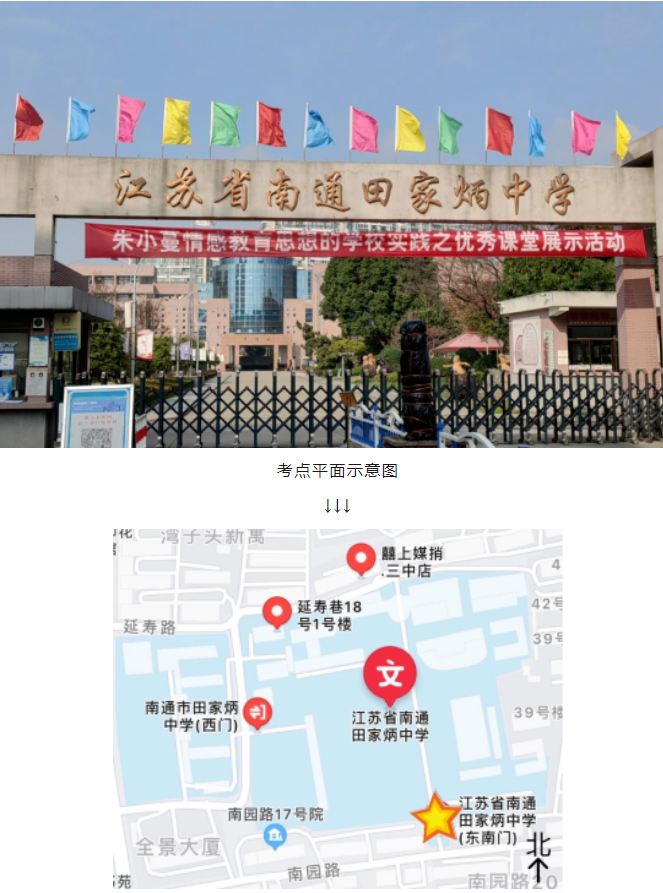 本次考試南通考區(qū)共設21個考點,部分考點名稱相近,請務必仔細核對??荚嚠斕?,送考人員、考生車輛均不得進入考點??忌鷳鶕?jù)自身情況選擇合適的出行方式,提前規(guī)劃出行路線,預留充足的時間,以免遲到。