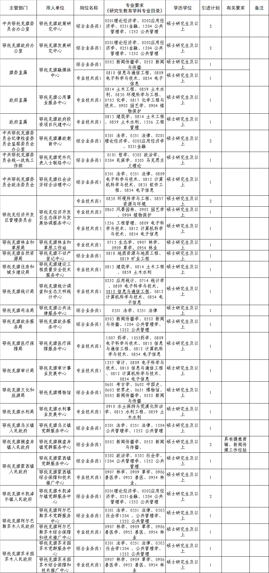 根據(jù)《鄂爾多斯市委 市人民政府印發(fā)〈關(guān)于實施更加積極開放有效人才政策打造一流人才高地的若干措施〉的通知》、《鄂爾多斯市事業(yè)單位引進(jìn)高層次人才和急需緊缺專業(yè)人才實施辦法》、《“智匯鄂托克”人才科創(chuàng)若干政策》和《鄂托克旗2024年度事業(yè)單位引進(jìn)高層次人才和緊缺專業(yè)人才實施方案》精神,現(xiàn)將鄂托克旗2024年度事業(yè)單位引進(jìn)高層次人才和緊缺專業(yè)人才有關(guān)事項公告如下: