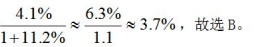 所以結(jié)果一定比4.1%要小,排除C、D,又因?yàn)?/span>