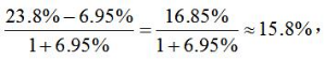 ,問題所求為現(xiàn)期份數(shù)比上年上升/下降百分之幾,為份數(shù)增長率考點(diǎn)。由材料可知,2014年新登記注冊外商投資企業(yè)戶均注冊資本同比約增長6.95%,注冊資本金額同比增長23.8%。則2014年新登記注冊外商投資企業(yè)戶數(shù)約比上年同期增長