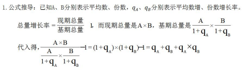 綜上,總量增長率的公式呈現(xiàn)形式還是略有不同的。希望大家以后在做到類似題目的時候,能夠準(zhǔn)確辨析,能夠熟練掌握。