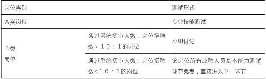 暫定2023年12月下旬進(jìn)行,具體時間和地點以準(zhǔn)考證為準(zhǔn)?;灸芰y試主要采取專業(yè)技能測試、小組討論等形式,對應(yīng)聘人員進(jìn)行考察。各崗位具體考核形式見下表: