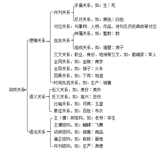 實(shí)際上也就是運(yùn)用造句的方法分析詞項(xiàng)間的關(guān)系,在多項(xiàng)型類比和對稱型類比中運(yùn)用較多。