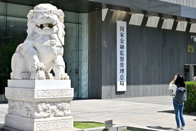 媒體記者在國(guó)家金融監(jiān)督管理總局門(mén)前拍攝(2023年5月18日攝)。新華社記者 李鑫 攝
