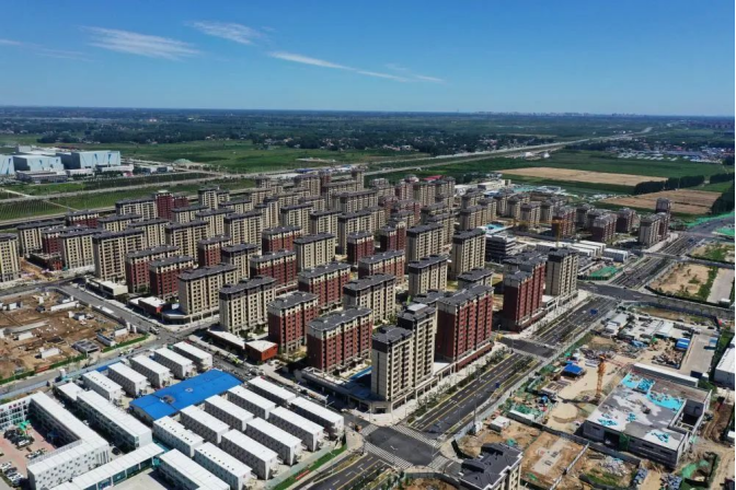 河北雄安新區(qū)容西片區(qū)安置房(2022年8月25日攝,無(wú)人機(jī)照片)。新華社記者 朱旭東 攝