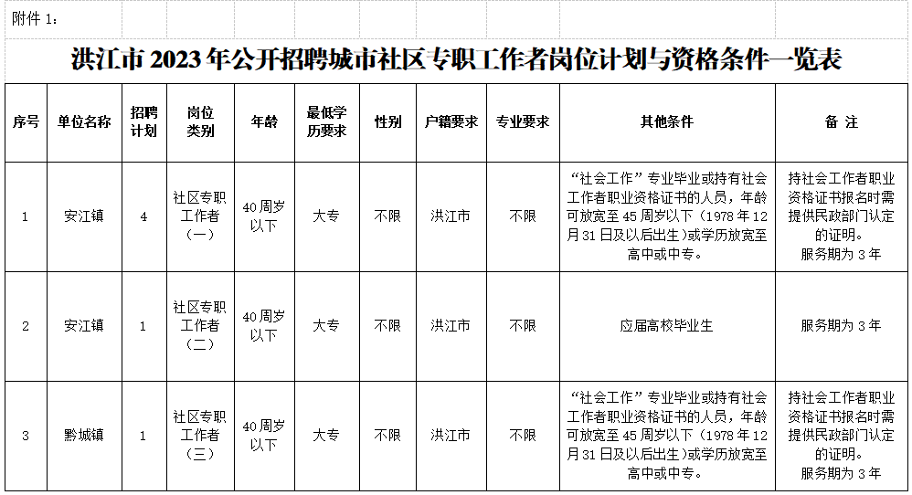 附件1.洪江市2023年公開招聘城市社區(qū)專職工作者崗位計劃與資格條件一覽表