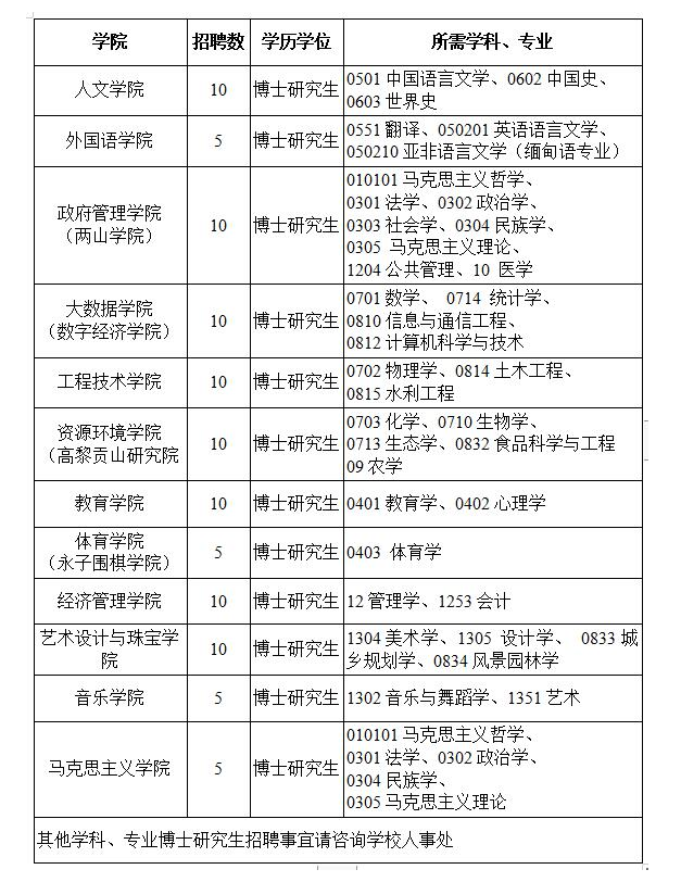 保山學(xué)院2024年度引進(jìn)高層次人才崗位計(jì)劃表