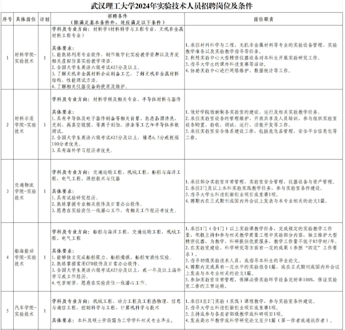 武漢理工大學(xué)2024年實驗技術(shù)人員招聘啟事