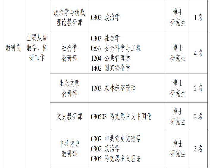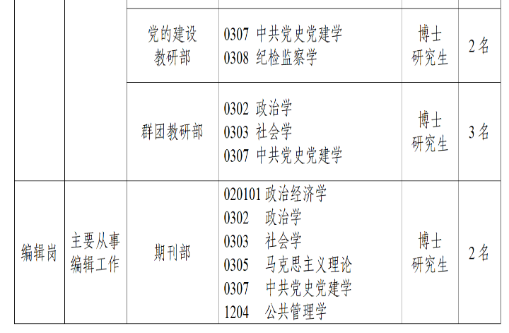 為進一步加強校(院、室)人才隊伍建設(shè),根據(jù)教學(xué)科研和學(xué)科建設(shè)需要,按照《天津市事業(yè)單位公開招聘人員實施辦法(試行)》(津人社局發(fā)〔2011〕10號)、《市委組織部市人力社保局關(guān)于進一步完善事業(yè)單位公開招聘工作的通知》(津人社局發(fā)〔2017〕37號)和《市委組織部市人力社保局關(guān)于進一步做好事業(yè)單位公開招聘高校畢業(yè)生等有關(guān)工作的通知》(津人社辦發(fā)〔2020〕100號),2024年,中共天津市委黨校(天津行政學(xué)院、中共天津市委黨史研究室)擬面向全國公開招聘31名博士研究生人員?,F(xiàn)公告如下: