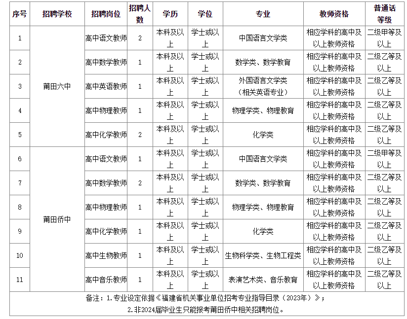 3.招聘對(duì)象的畢業(yè)證書(shū)、學(xué)位證書(shū)、教師資格證書(shū)等須在2024年7月31日前取得(應(yīng)屆畢業(yè)生的學(xué)歷、學(xué)位證書(shū)可延至2024年12月31日)。