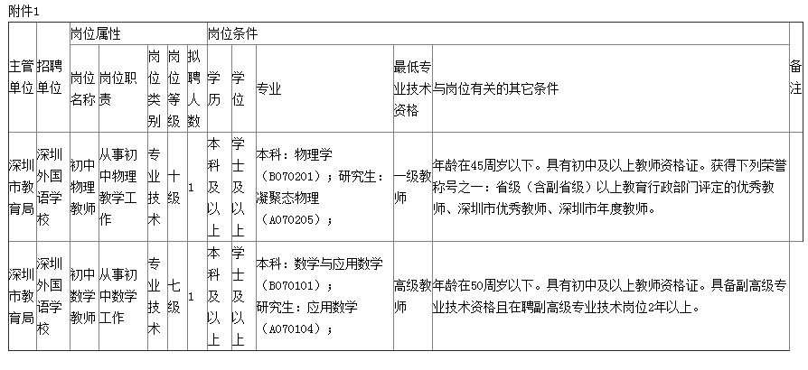 1.深圳外國語學(xué)校2024年1月公開選聘教師崗位表